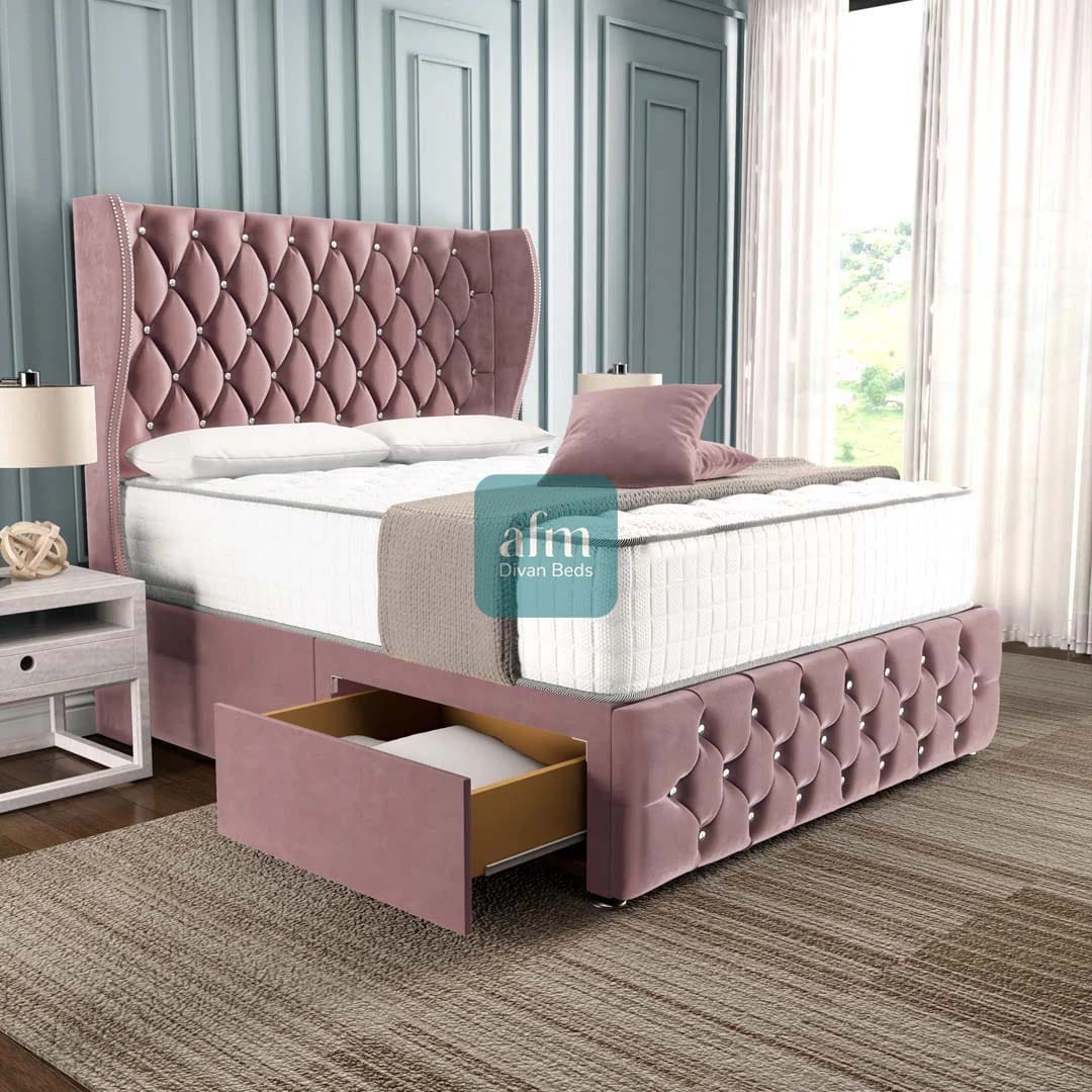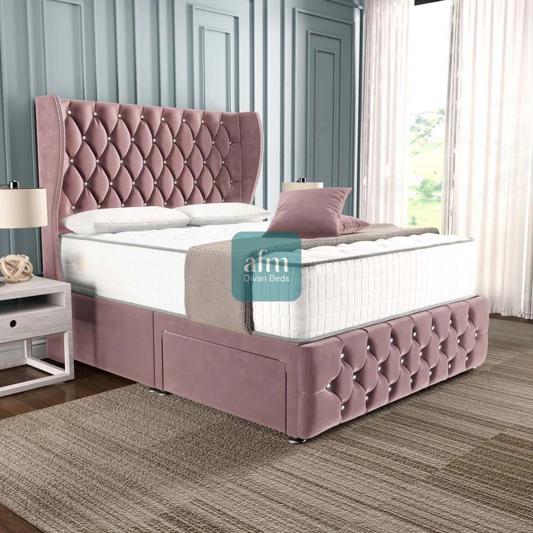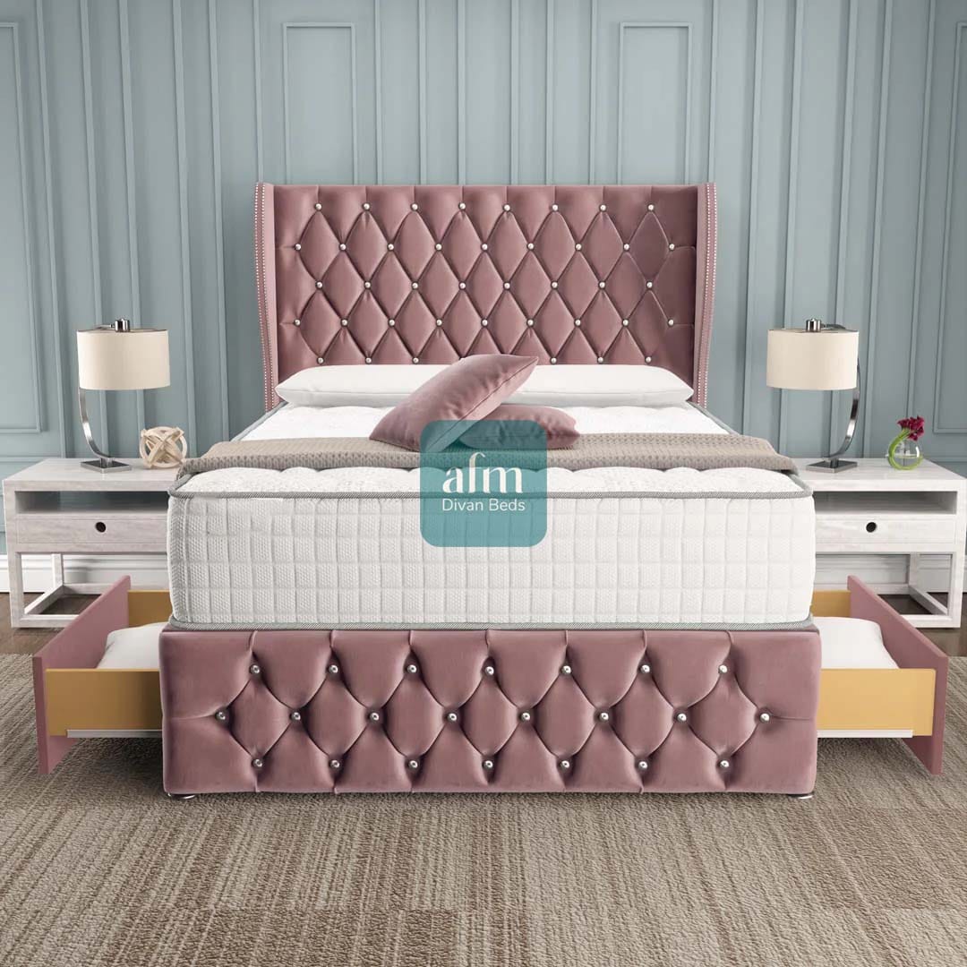 Monaco Wingback Divan Bed with Storage & Optional Mattress